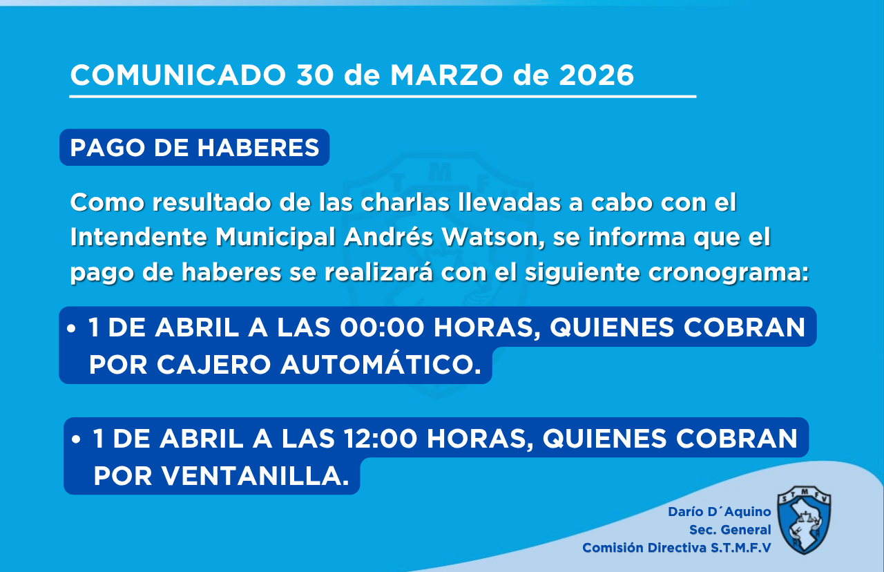 INFORMAMOS A NUESTROS COMPAÑEROS AFILIADOS AL SINDICATO MUNICIPAL, QUE MAÑANA...