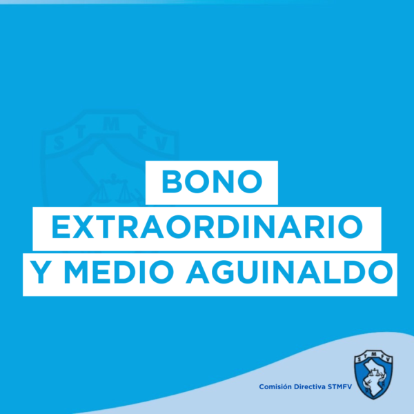 SE INFORMA A TODAS Y TODOS LOS TRABAJADORES MUNICIPALES QUE EL MIÉRCOLES 14 DE DICIEMBRE SE ABONA EL BONO EXTRAORDINARIO DE $25.000 ACORDADO OPORTUNAMENTE ENTRE EL EJECUTIVO MUNICIPAL Y EL SINDICATO DE TRABAJADORES MUNICIPALES.